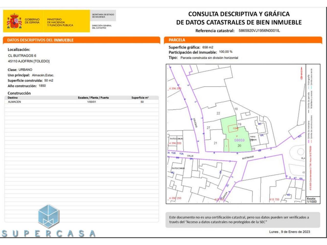• Descripción GRUPO SUPERCASA vende terreno urbano de 658m² en el centro del pueblo.