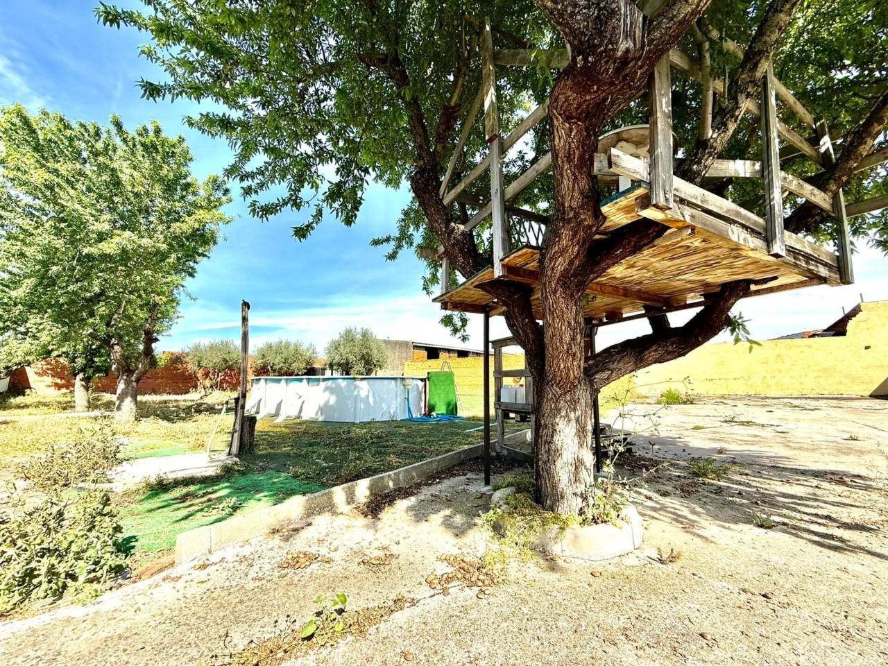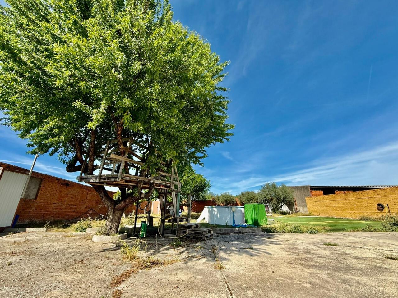 La parcela de 1000m² esta acondicionada y cerrada perimetralmente de ladrillo y con muy fácil acceso a través de amplio portón en esquina con zona para barbacoa, piscina elevada, un baño auxiliar, e infinidad de posibilidades para su disfrute en familia.